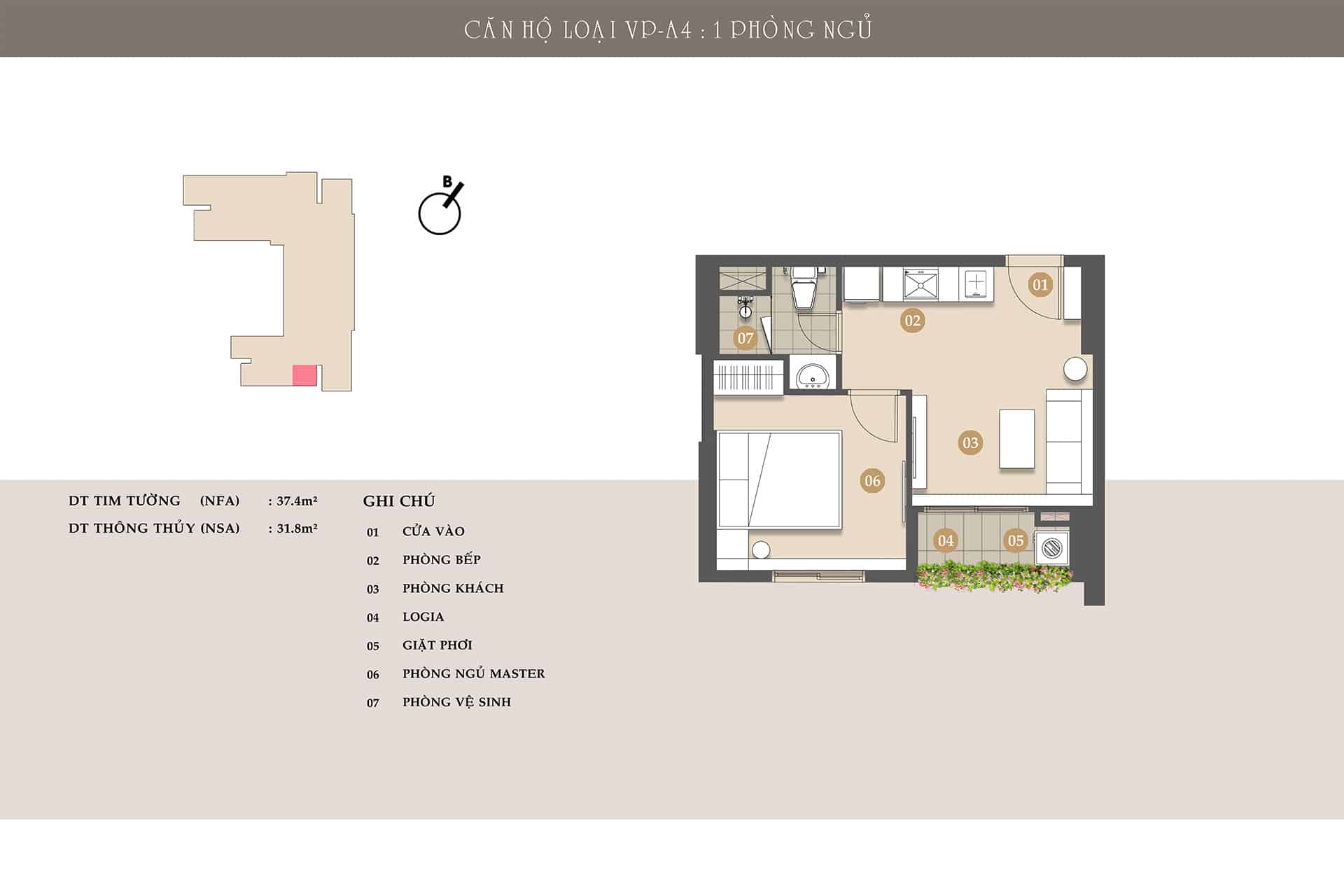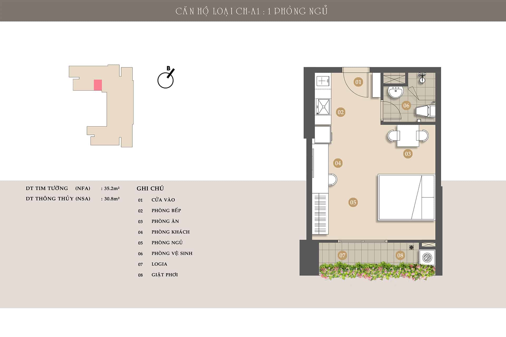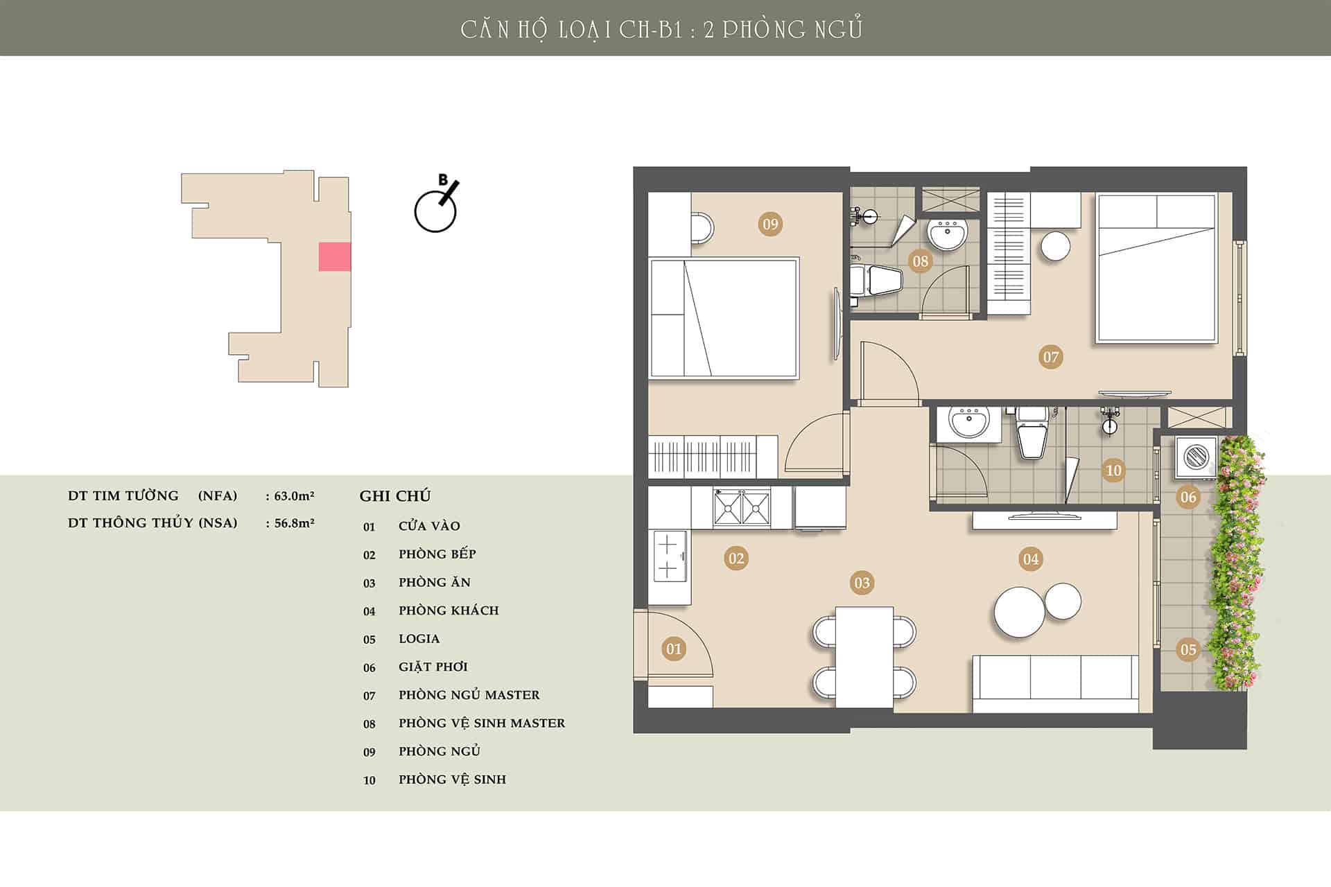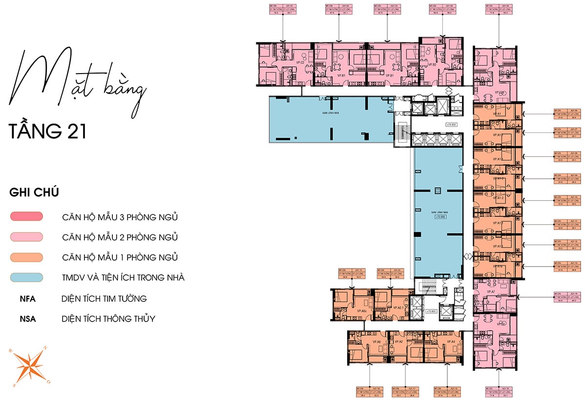 Các căn hộ đa dạng 1–3PN và officetel, chiều cao trần hợp lý, tối ưu ánh sáng tự nhiên và tầm view, phù hợp cả nhu cầu an cư và đầu tư.