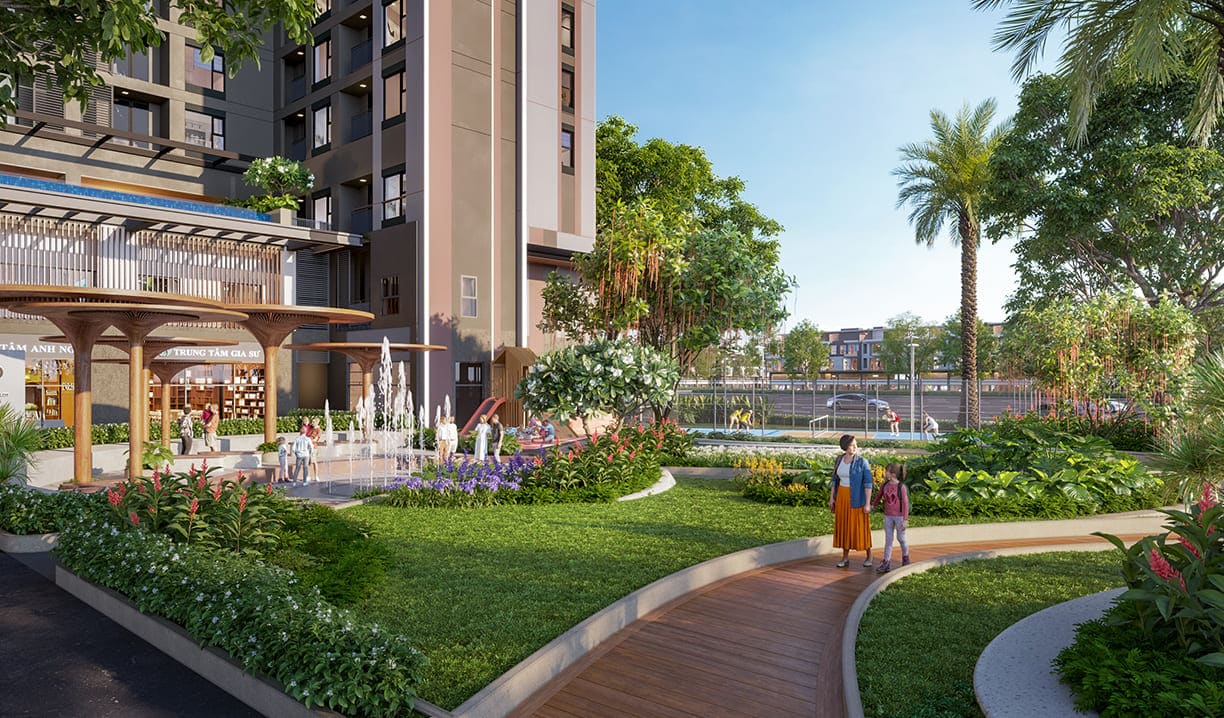 Mọi nhu cầu sinh hoạt đều được đáp ứng ngay tại nội khu: shophouse thương mại, siêu thị mini, cửa hàng tiện lợi, spa, trường mầm non,… giúp cư dân tiết kiệm thời gian và tận hưởng cuộc sống tiện nghi trọn vẹn.
