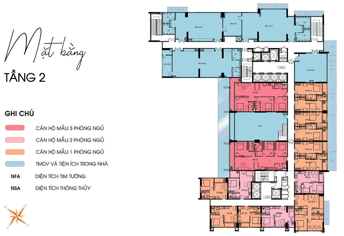Các căn hộ đa dạng 1–3PN và officetel, chiều cao trần hợp lý, tối ưu ánh sáng tự nhiên và tầm view, phù hợp cả nhu cầu an cư và đầu tư.
