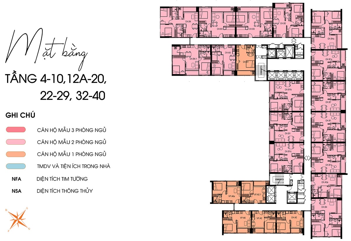 Block A cao 40 tầng với 2 tầng hầm dành cho căn hộ hỗn hợp, trong khi Block B 6 tầng được bố trí cho khu thương mại, dịch vụ và sinh hoạt cộng đồng, tạo sự thuận tiện tối đa trong sinh hoạt hàng ngày.