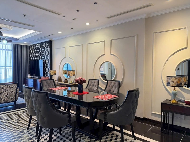 Nội thất phong cách Indochine hiện đại đồng bộ, toàn bộ đều mới 100%, mang đến không gian vừa sang trọng vừa ấm cúng. Người mua có thể dọn vào ở ngay mà không tốn thêm chi phí hoàn thiện.