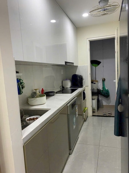 Căn hộ bàn giao đầy đủ nội thất, người mua chỉ cần dọn vào ở ngay. Không gian sử dụng được tối ưu với phòng khách liên thông bếp, phù hợp nhịp sống gia đình trẻ.