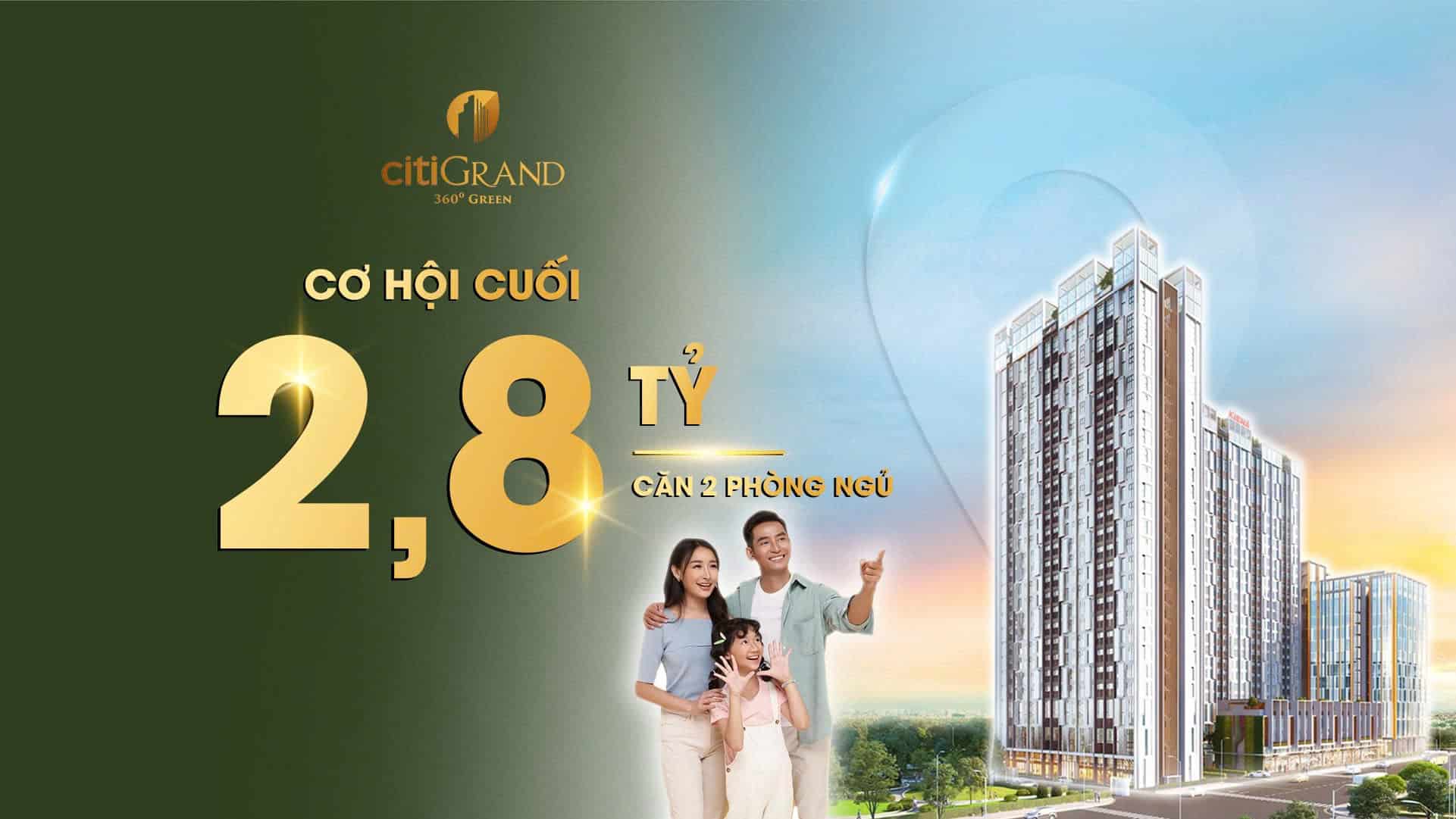 Với mức giá từ 2,8 tỷ đồng/căn hộ, Citi Grand mang đến cơ hội an cư chất lượng cho cư dân trẻ, đồng thời mở ra tiềm năng đầu tư bền vững tại TP Thủ Đức. Đây chính là lựa chọn sáng giá cho những ai đang tìm kiếm một tổ ấm hiện đại, tiện nghi và giàu giá trị trong tương lai.