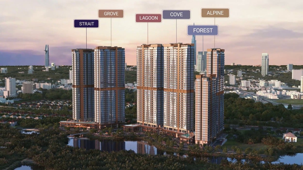 | Quy mô xây dựng | Gồm 6 tòa tháp căn hộ cao 29 – 39 tầng thứ tự A1 – A6 với tổng cộng 1.980 căn hộ cao cấp. Dự án được chia thành 2 phân khu khác nhau như sau:Khu 1 gồm 4 tháp còn lại A1 – A2 – A3 – A4 cao 29 – 39 tầng với 1.307 căn hộ chung cư.