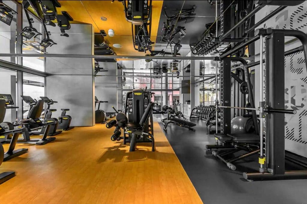 - Phòng gym trang bị máy hiện đại, không gian mở.