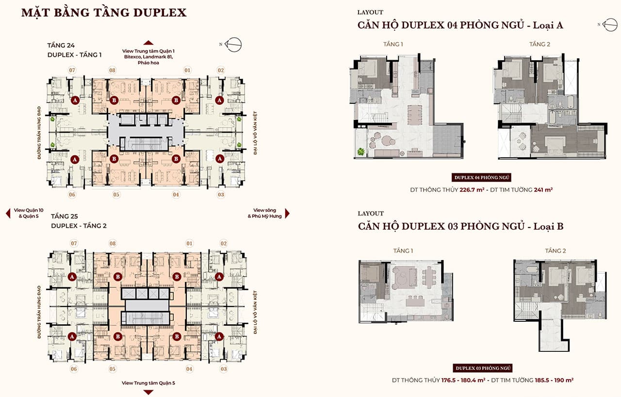 - Tầng 24 – 25: căn hộ Duplex (8 căn), thiết kế thông tầng, không gian sang trọng.