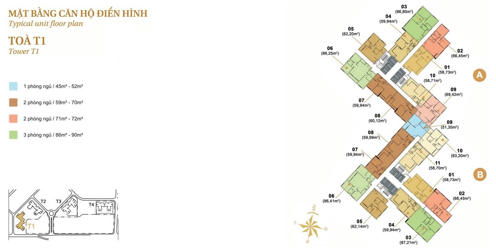 Dự án gồm 4 tháp căn hộ cao tầng được bố trí khoa học, mỗi tầng từ 20–21 căn, sử dụng 8 thang máy và 4 thang bộ, kèm 2 thang chuyên dụng PCCC nhằm đảm bảo an toàn tuyệt đối.