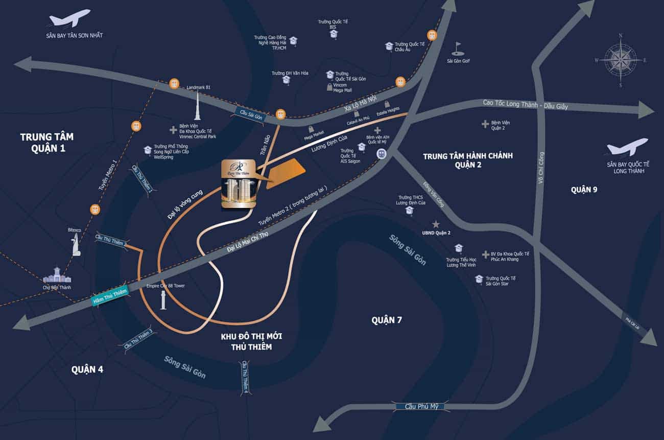 - 3 – 5 phút đến Bình Thạnh qua cầu Sài Gòn hoặc cầu Thủ Thiêm.