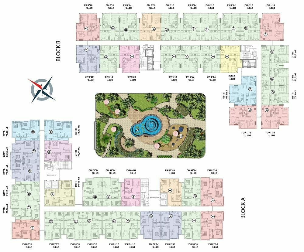 - Căn 2 phòng ngủ: phù hợp gia đình trẻ hoặc người độc thân muốn ở trung tâm.