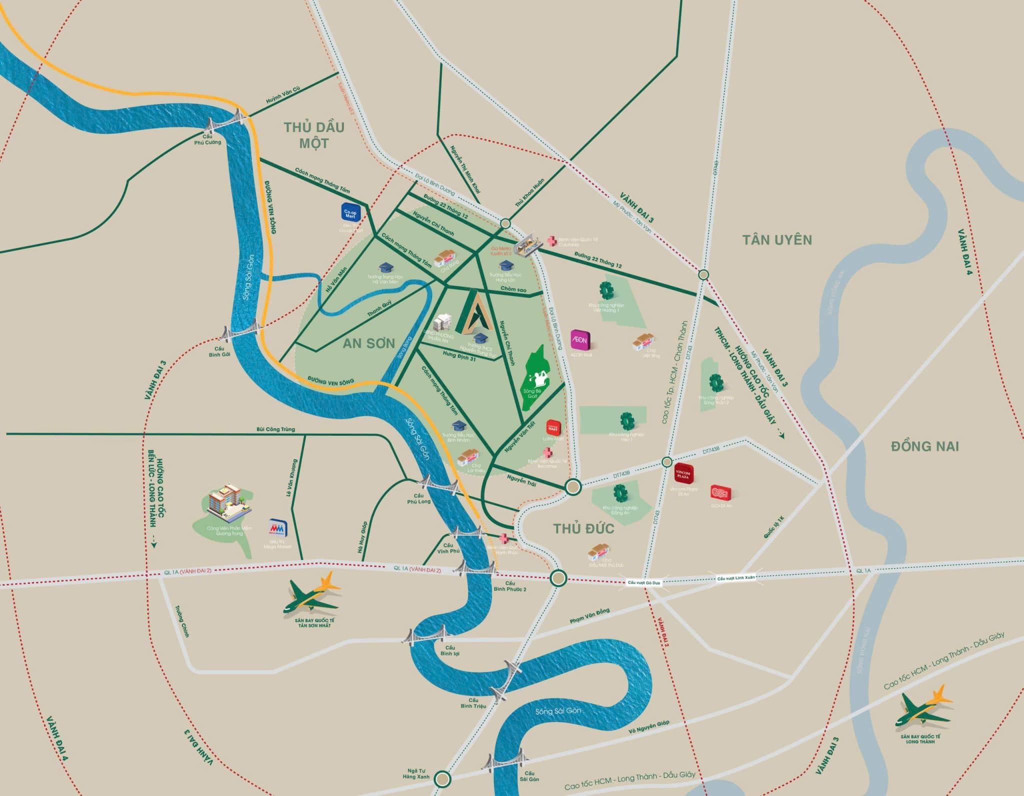 - Kết nối thuận tiện về trung tâm TP.HCM thông qua Quốc lộ 13 và các trục đường lớn