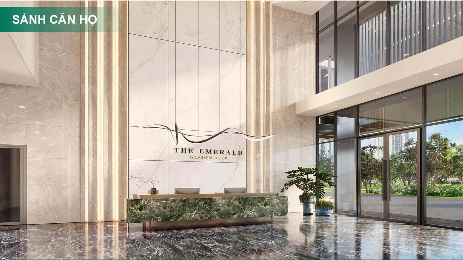 Khu sảnh đón được đầu tư thiết kế chỉn chu, mang phong cách sang trọng tương đương tiêu chuẩn khách sạn cao cấp. Đây không chỉ là nơi tiếp đón cư dân và khách đến thăm mà còn thể hiện đẳng cấp và phong cách sống của cộng đồng The Emerald Garden View.