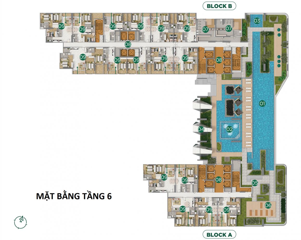- Tầng 5 – 6: Tiện ích hồ bơi, GYM, spa, xông hơi,….