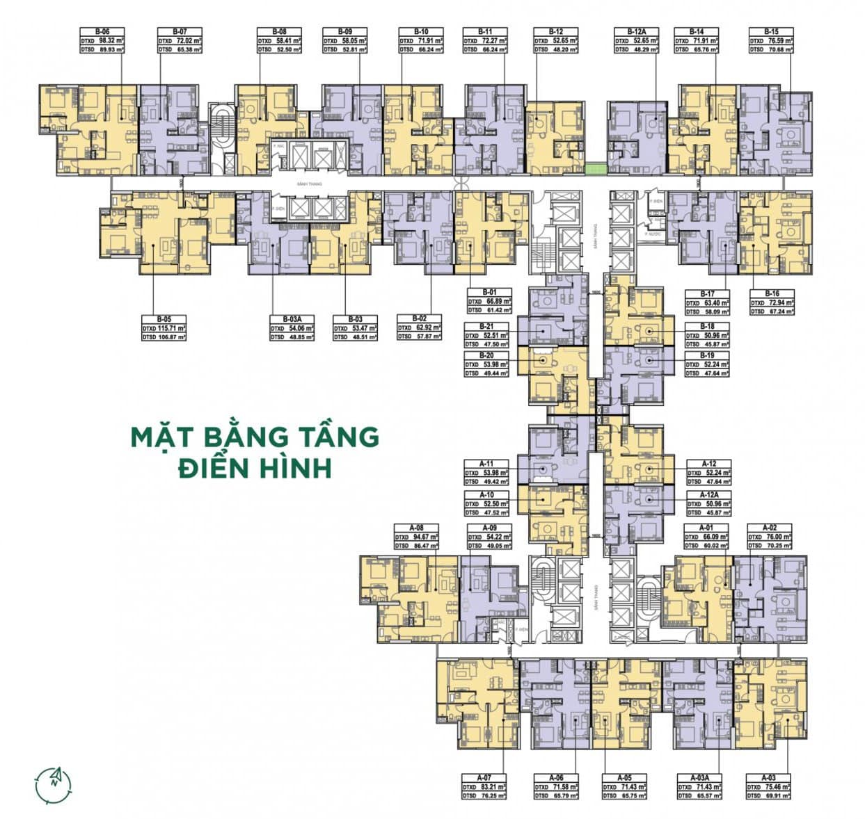Các căn hộ tại The Emerald Golf View có diện tích linh hoạt từ 49 – 115m², thiết kế từ 1 đến 3 phòng ngủ, phù hợp với nhu cầu an cư của cá nhân, gia đình trẻ và hộ gia đình nhiều thế hệ.