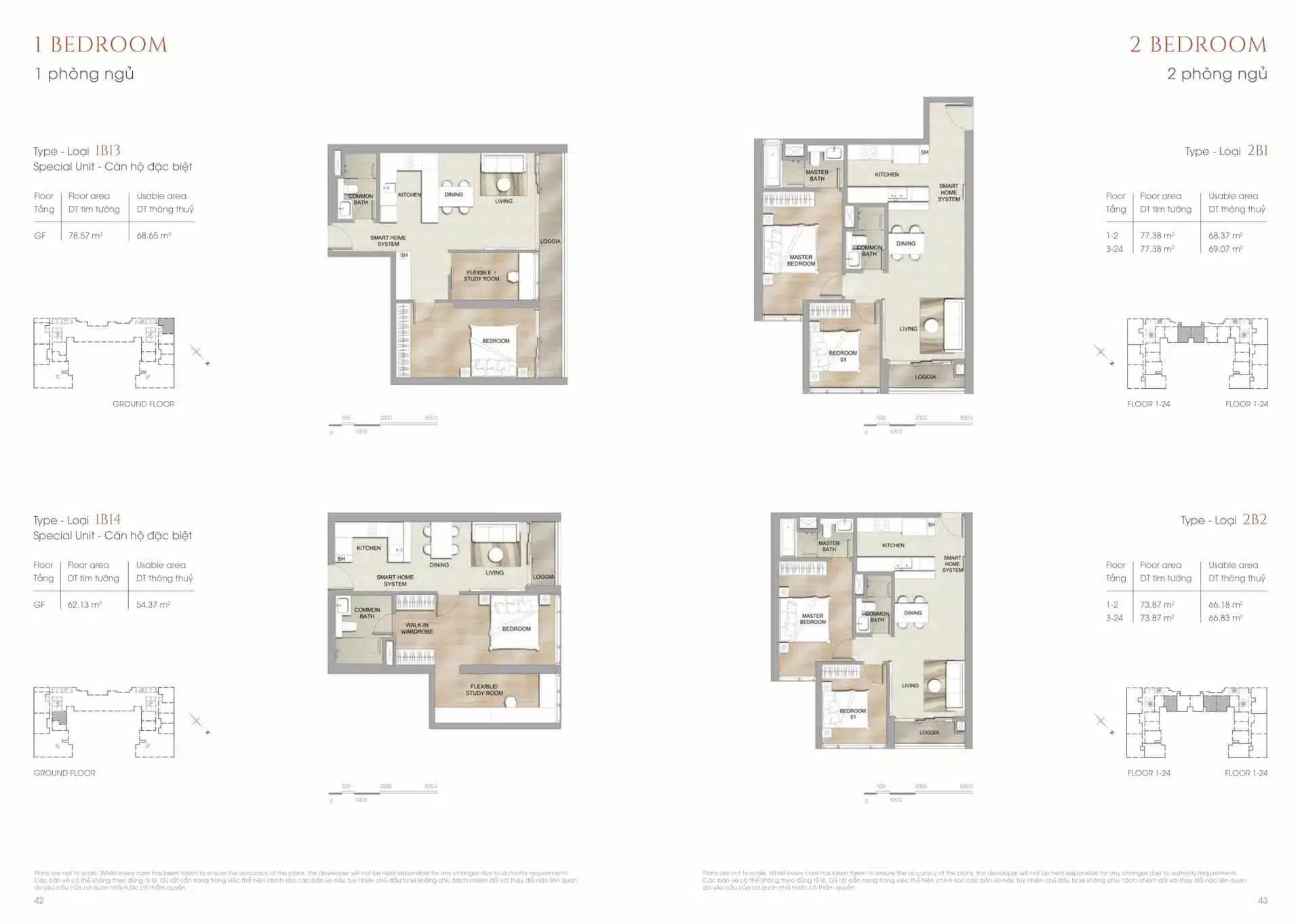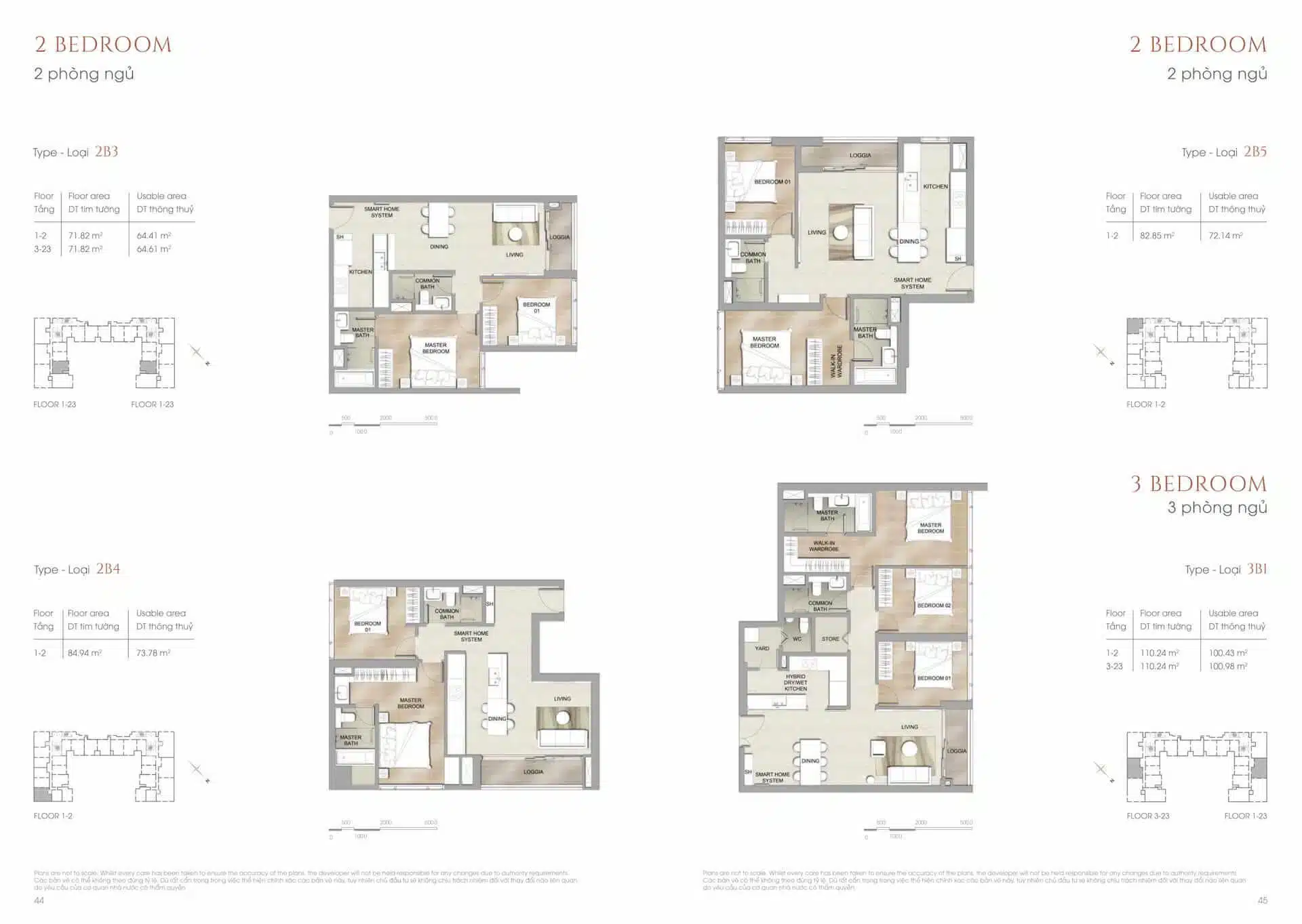 - Penthouse: 234 – 250m² (có thang máy riêng)