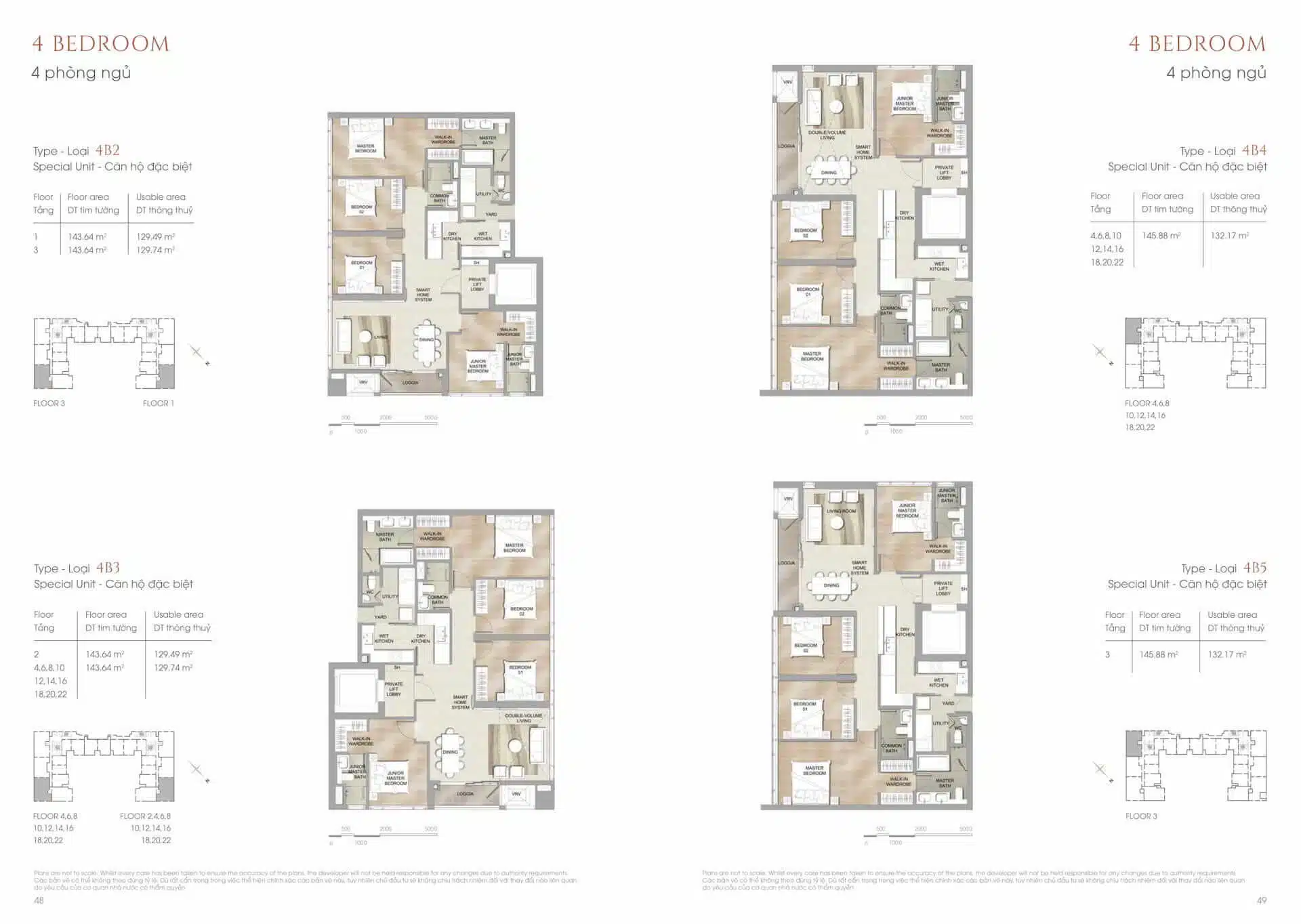 | 4PN thường (143 – 145m²) | 27 – 31 tỷ/căn | 85 – 95 triệu/tháng |