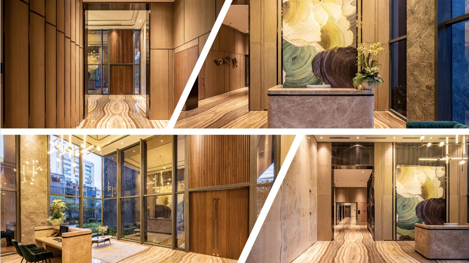 - Sảnh lễ tân được ốp đá núi lửa quý hiếm – điểm nhấn độc bản khó tìm tại các dự án khác.